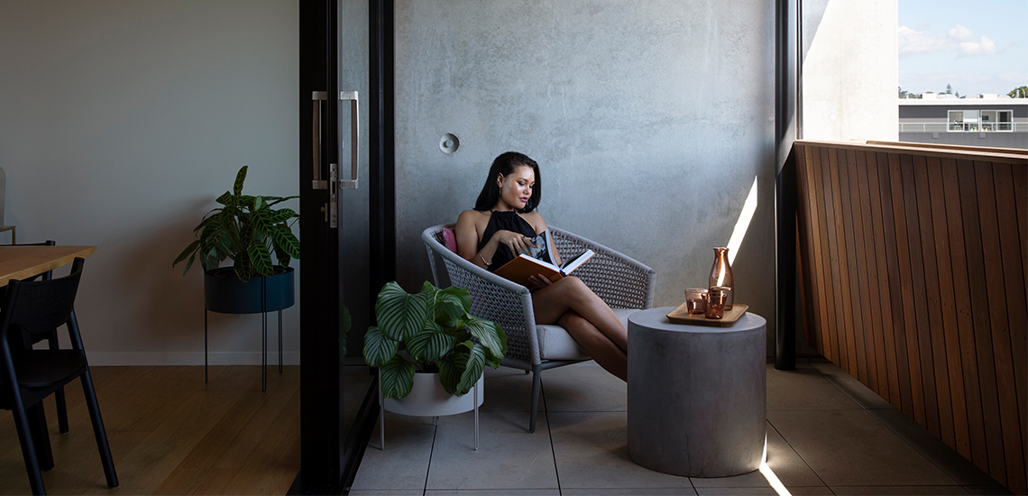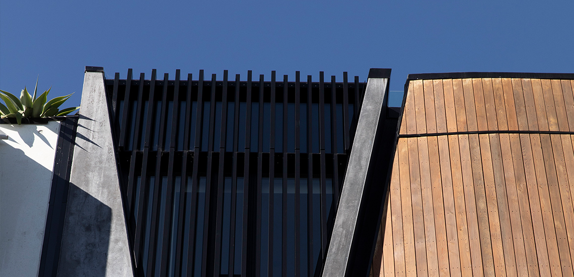 Next is the use of black oxide concrete on the façade as well as the solid balustrades which are also planter boxes. These items pay homage to the Volcanic field and fertile soils of Tāmaki Makaurau.